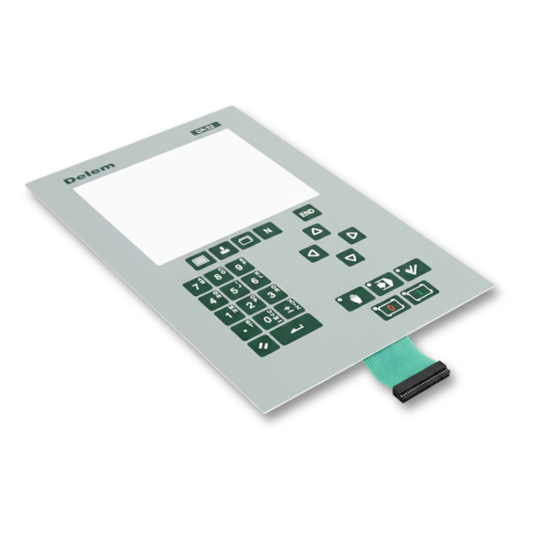 Delem DA-52 membrane keyboard by Linepro Controls Pvt Ltd is designed for CNC machines, offering durability and high reliability. It features water and dust resistance, inbuilt LED backlighting, and EMI shielding for superior performance in industrial environments.